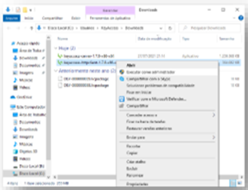 Clique com o botão direito em cima do arquivo executável do instalador do HTTP Client e execute como administrador: