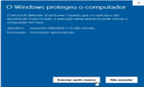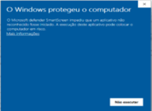 CASO apareça a uma mensagem do SmartScreen impedindo o instalador, clique em MAIS INFORMAÇÕES e, na tela seguinte, no botão EXECUTAR ASSIM MESMO.