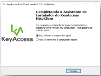 Tela de finalização da instalação. Conforme anteriormente exposto, escolha SIM e clique em CONCLUIR.