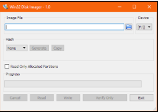 - Abra o Win32 Disk Imager;