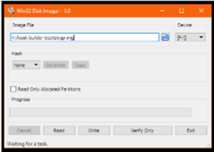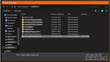 Escolha o arquivo kiosk-builder-bootstrap.img que você descompactou no passo anterior numa pasta e clique em OK. O arquivo selecionado é mostrado na tela principal.